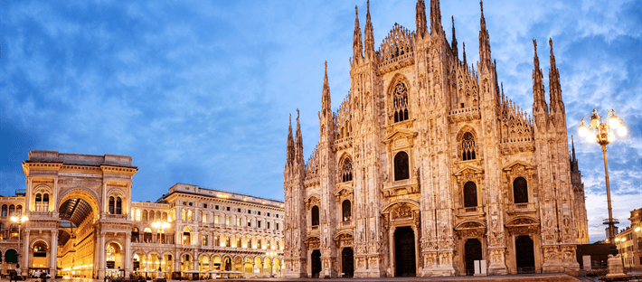 Morning: Arrival in Milan and welcome. Visit the majestic Milan Cathedral (Duomo), one of the most impressive Gothic cathedrals in the world. Afterwards, visit the Galleria Vittorio Emanuele II to enjoy a shopping experience or simply admire its extraordinary architecture.